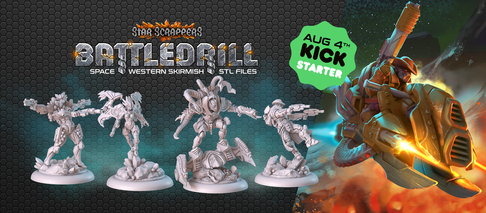 https://www.kickstarter.com/projects/hexy/starscrappers-battledrill-3d-printable-skirmish-stl