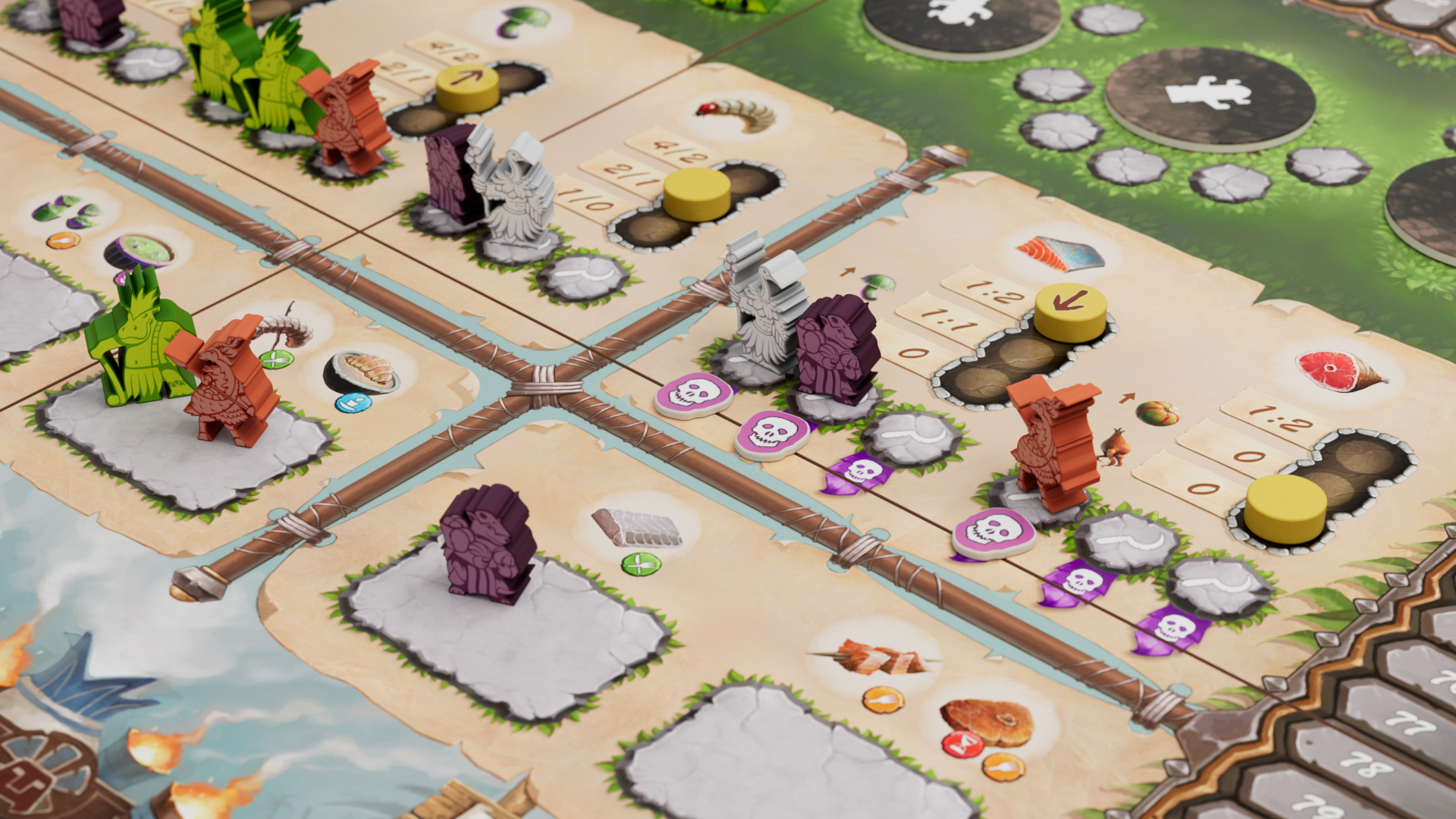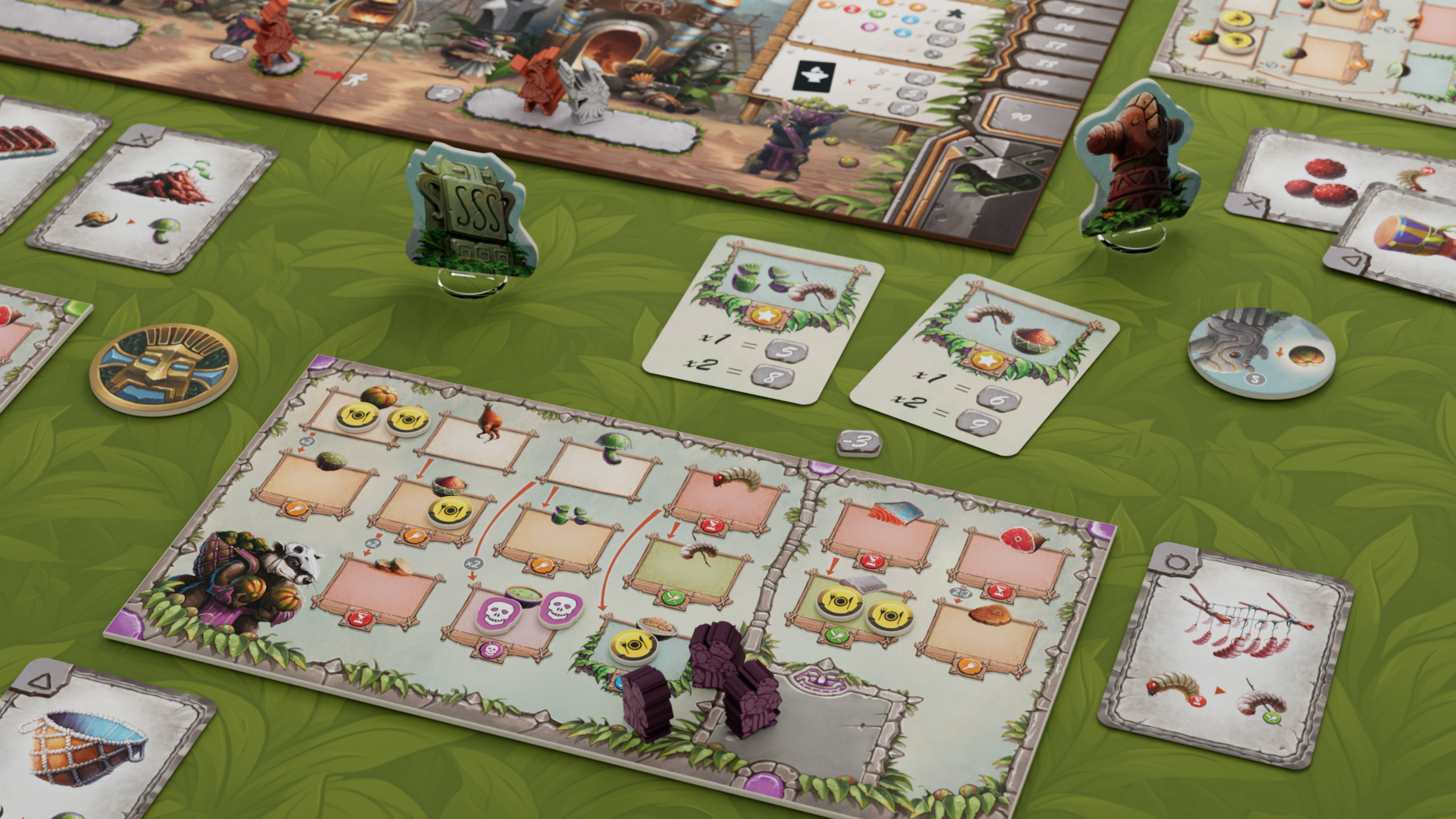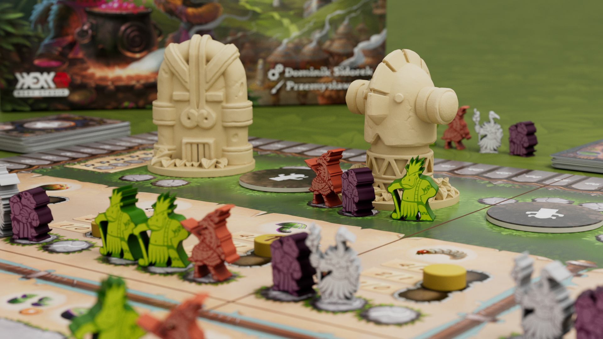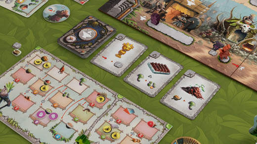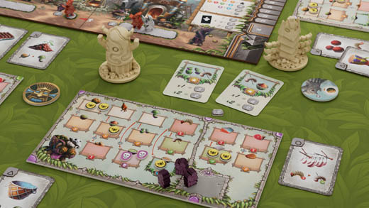 The goal of the game is to have the most Happiness Points at the end of the sixth round (season). There are several different ways to gain Happiness Points, but the most important activity in the game is to send your tribe members (called here “tribers”) to various spaces on the main board and perform actions corresponding to them.