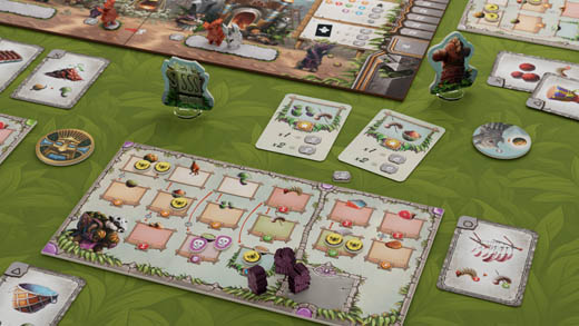 Developing inventions (in the form of invention cards with different symbols) enhances the effectiveness of your food processing, and collecting sets of different symbols brings extra points at the end of the game.